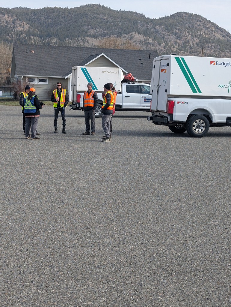 Tree planters doing some “Driver’s Training”. The lead hand says they will be planting trees out around highway Eight West of Merritt. The area is the site of recent fires.