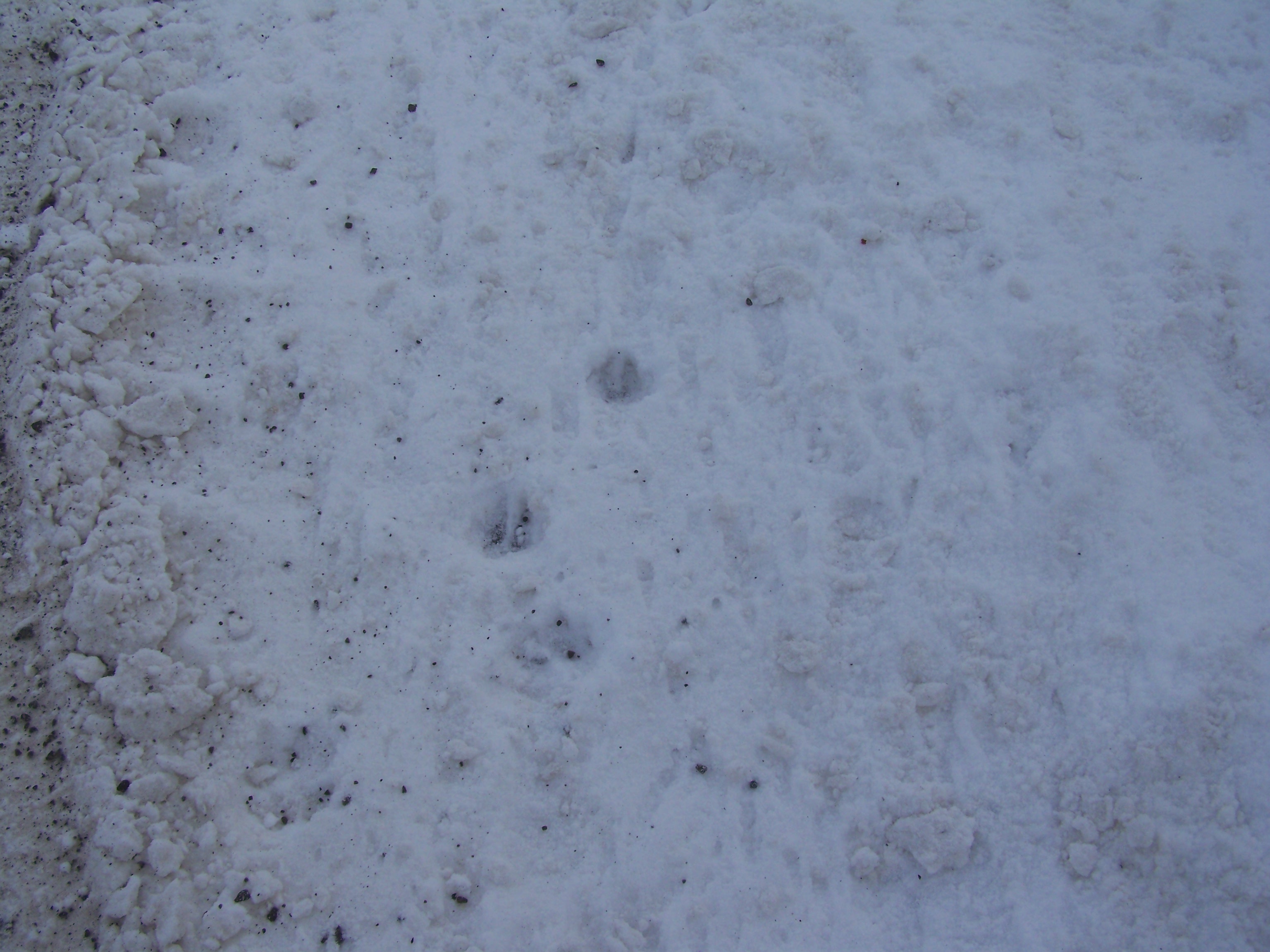These deer tracks are in a local neighbourhood , by the city works yard at the new recycle bins , the local fauna must approve of the initiatives.