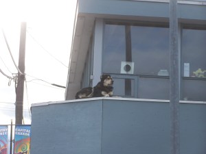 This dog has a second story view and is supervising the renovation of the building that was once the office of the Conyt Friendship Center, they moved up to the old government agents building , that moved to a brick building in the Garcia Street Mall. The building once housed Moyes Realty a Second War, Sargent, Ken Moyes the proprietor, served in the Italian Campaign for Canada.
