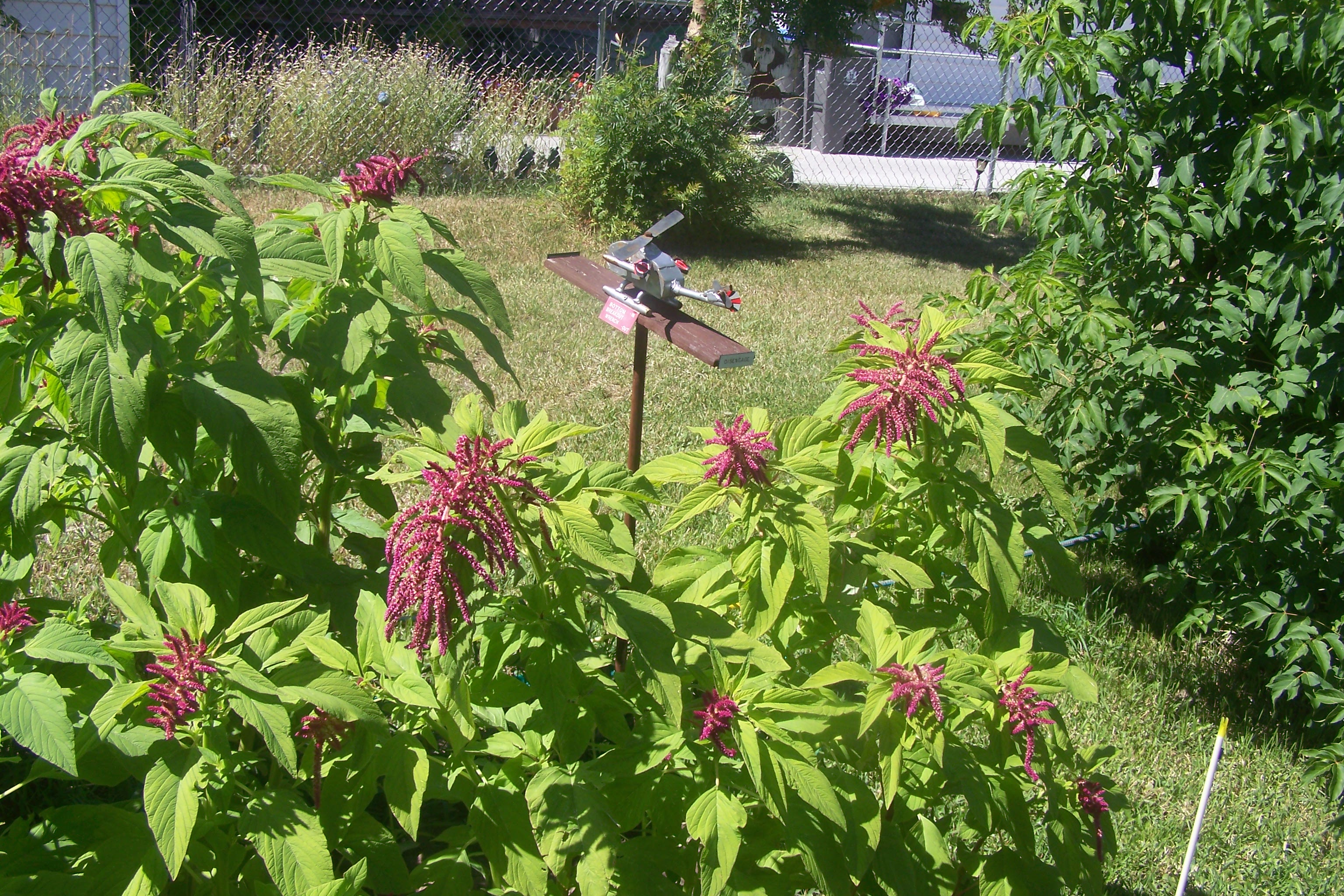 The red color of the inflorescences is due to a high content of betacyanins, as in the related species known as “Hopi red dye” amaranth. Ornamental garden varieties sold under the latter name are either Amaranthus cruentus or a hybrid between A. cruentus and A. powelli. In indigenous agriculture, A. cruentus is the Central American counterpart to South American A. caudatus Source wikipedia.