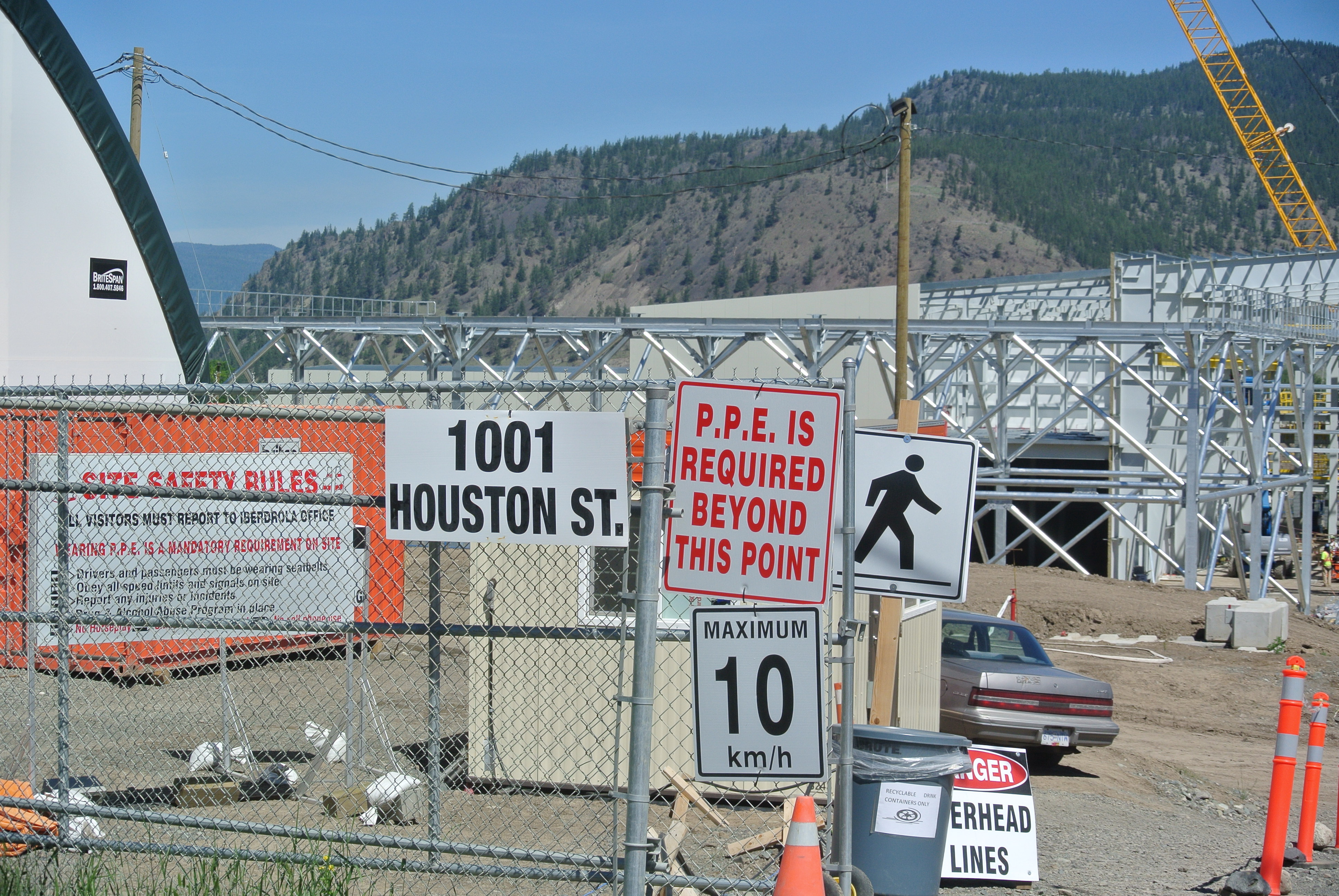 After months of pile driving and concrete work the large building of the multiple hundreds of millions of dollars in project, posts its address. The fact that it is in the city limits makes it part of the tax base. Houston street is the truck route used by logging trucks to service 3 sawmills in the city as well.