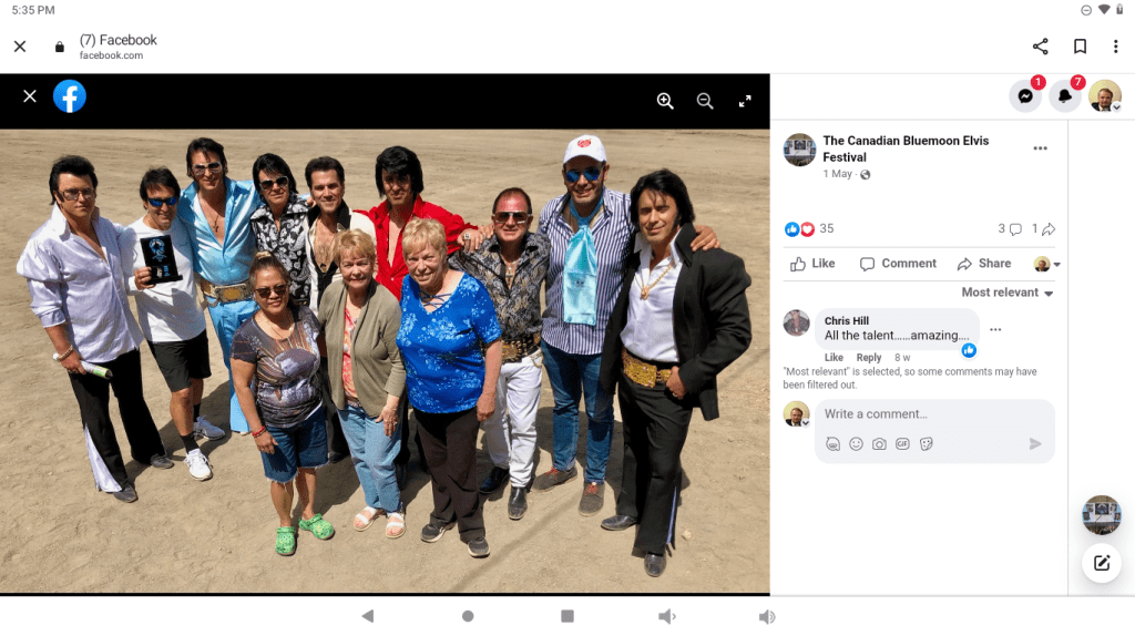 A group of fans and tribute artists, blue moon activities in a prior year.