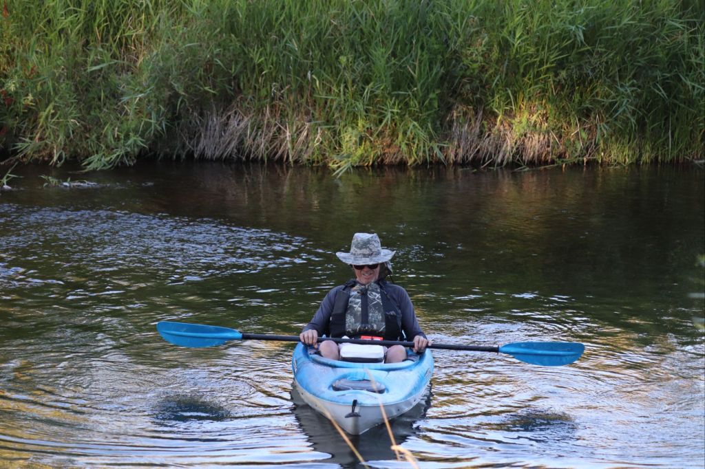 To enjoy these moments we took a walk about a half a block down Garcia Street to the Nicola River and we were delighted to see flocks of wood ducks coming down the river and, lo and behold. This fella shows up in a kayak who had been obviously driving ducks down the river, Both him and another both were delighted with The 8-hour 25 km paddle from the dam at Nicola lake to the bridge on Voght Street in Merritt.