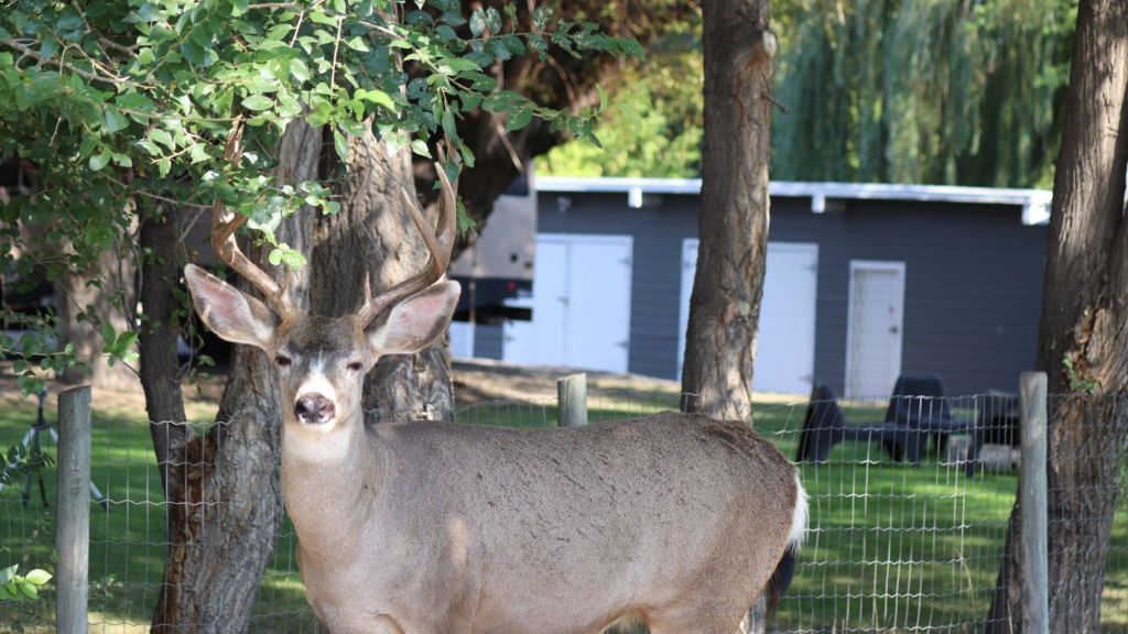 The picture is of a four-point mule deer buck. Near the corner of Garcia and Merritt Avenue in Merritt, British Columbia. Circus September 8th…