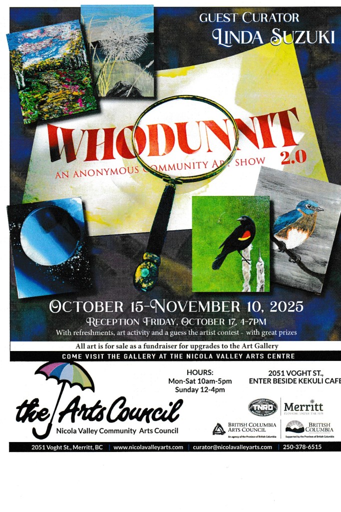 The Nicola Valley Community Arts council is at it with a show that runs till November 10th, “Who Done It”, displays a lot of local artists with the same size canvas putting their art up anonymously and showing their style into a Discovery.