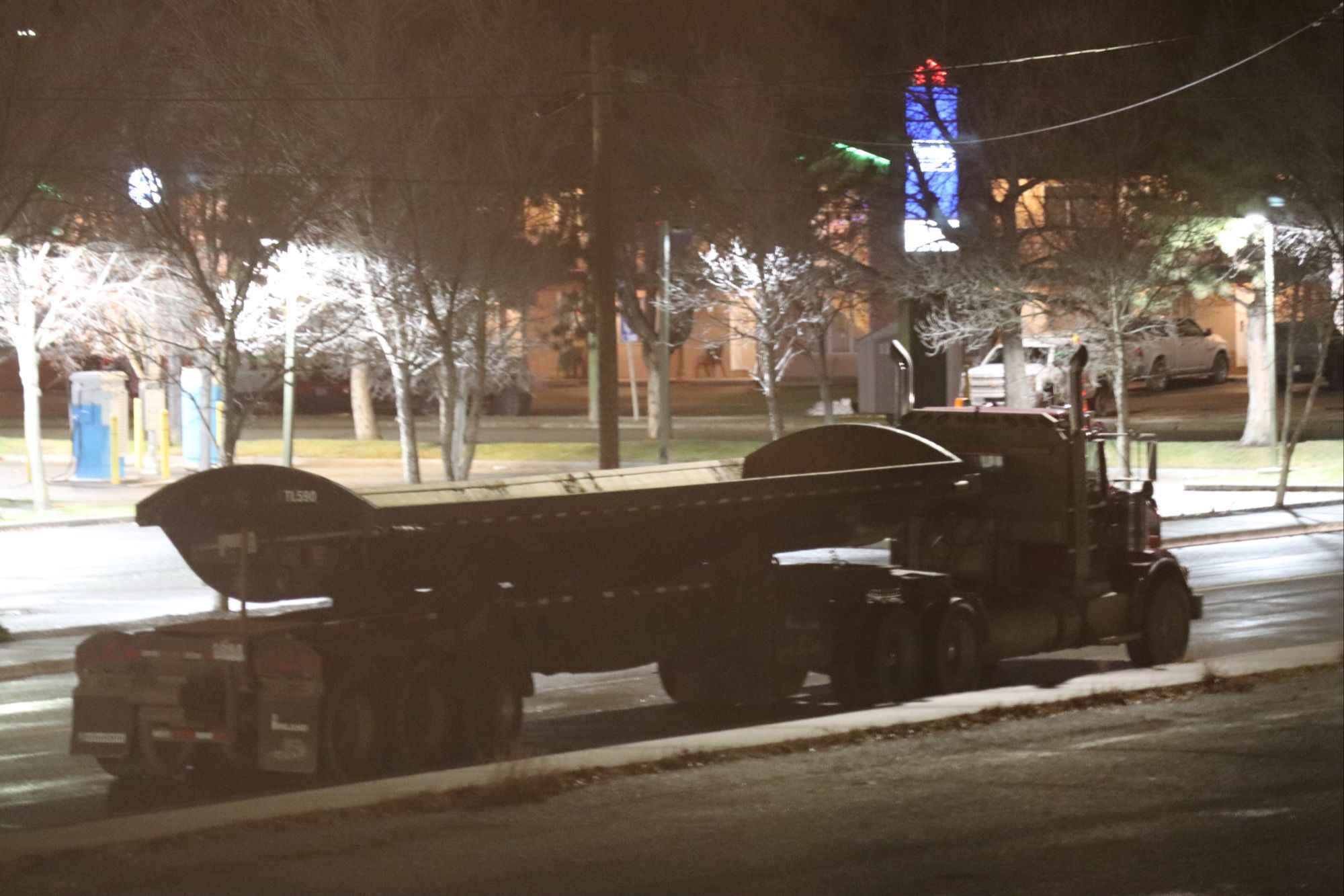 A heavy dump truck parked several nights, overnight, next to the BC hydro quick charging station, Voght Street and Merritt avenue, Merritt BC. Merritt is a small community and one of the members of the Thompson Nicola regional district government.