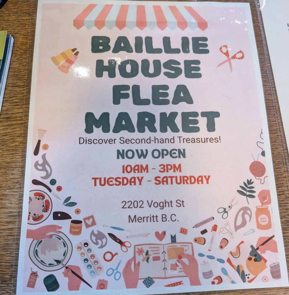 The Bailey house, home of the Nicola valley historical society and a dream of a immigrant. Is open different hours now; from 10:00 in the morning to 3:00 in the afternoon of the historic house has put reclaimed treasures into the house that would usually be used as a touring site has become an opportunity to reclaim some treasures in thrift. The sale will remain at n effect for the winter, Five days a week Tuesdays through Saturdays.