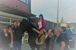 Max the object of attention for the Secret Door Group, (at Brambles Bakery) show this month. Pictured with Dr. Paul Molnar are a number of the 12 artists that have made a renderings of Max for the May /June show in the Bakery. Max at 16 hands is said to be in the up coming movie The New Planet of the Apes ,coming in June.