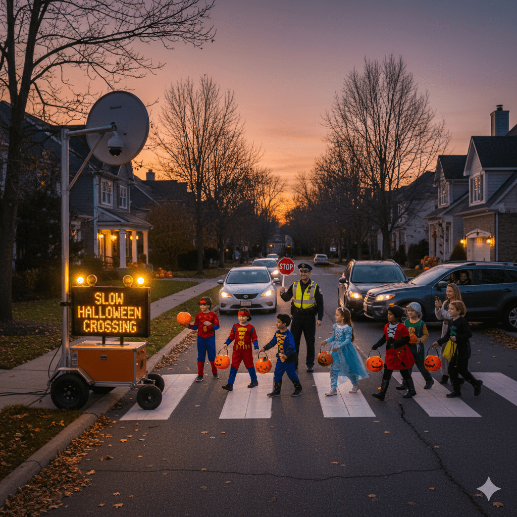Wear visible clothing abide by traffic laws. Do what parents and adults say, have a safe Halloween. Don’t be red-faced, for anybody the day after.