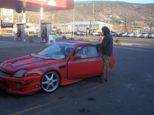 This car and trailer came down from Williams Lake to go to a classic car show in Salmon Arm, he stopped here for lunch. Today one hundred, peers are being hosted for lunch by the local club at central park.