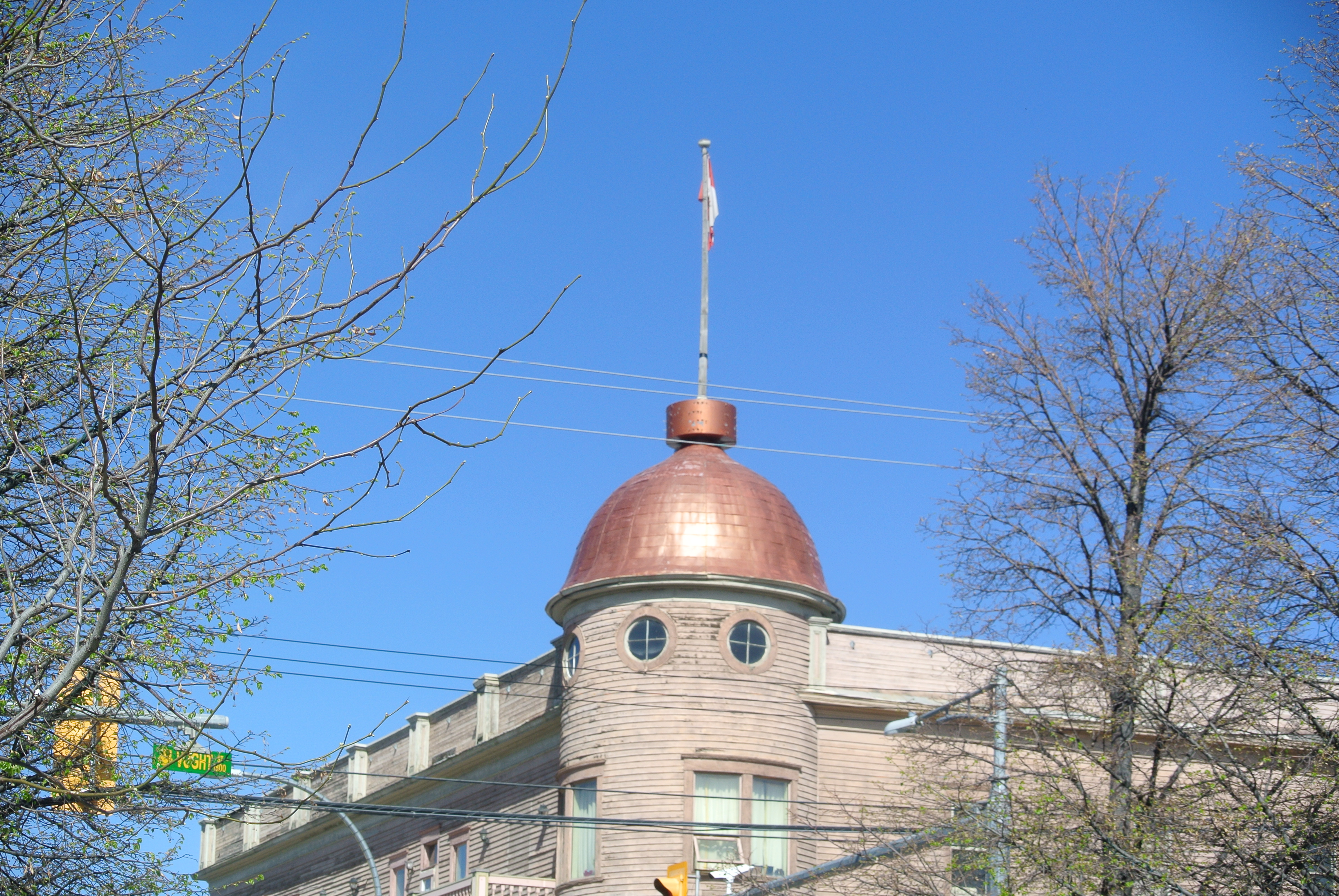 Constructed for around $6,000, the three-story building was considered one of the finest “dollar-a-day” hotels in BC’s interior. It featured a large barroom, a ladies’ parlor, and initially, 30 guest rooms which were later expanded to 60. The hotel’s most distinctive feature is its conspicuous copper dome, which is a recognizable landmark throughout the city. Throughout its existence, the hotel has had numerous owners and has been a continuous gathering place for residents and travelers.
