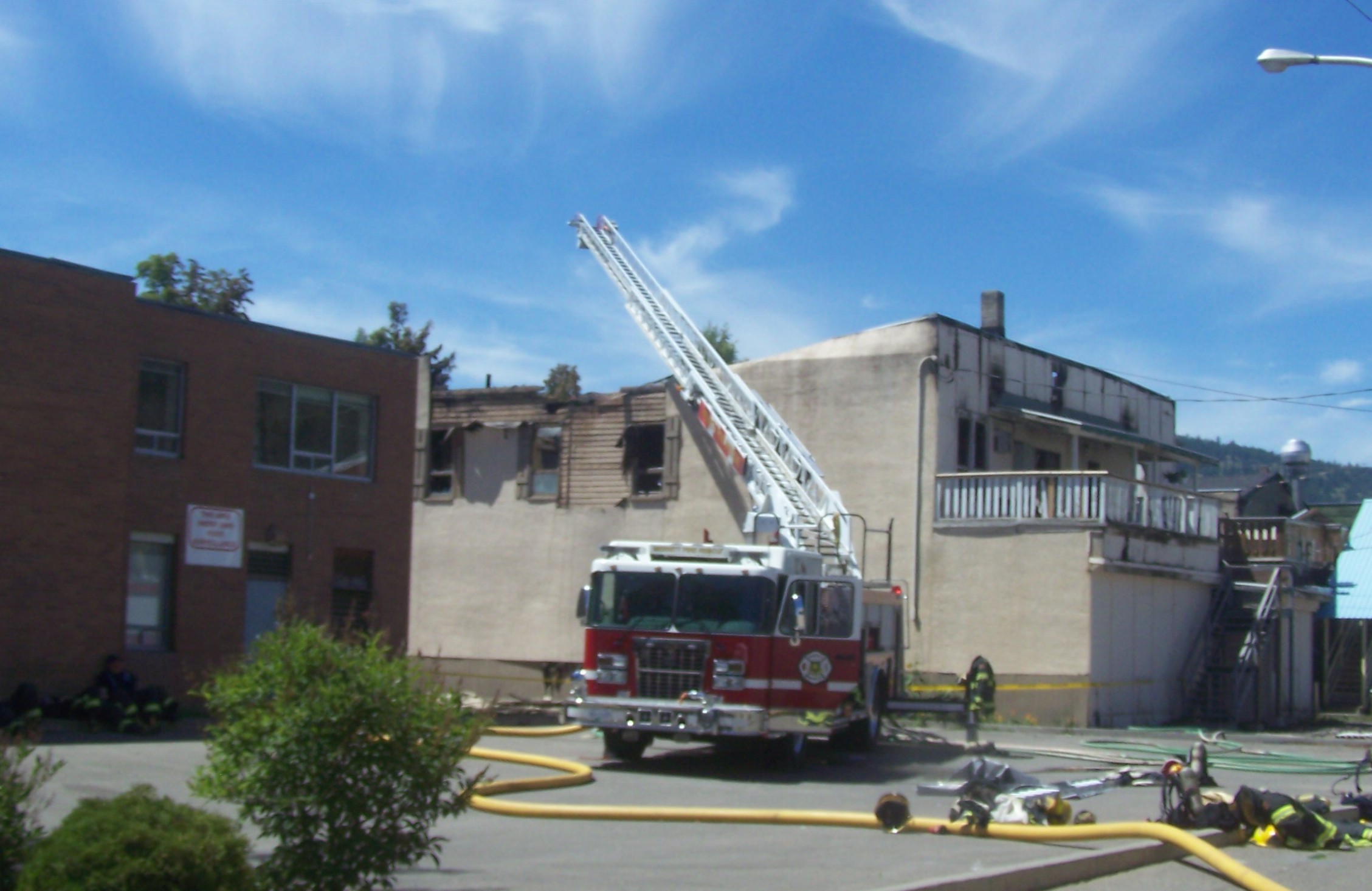 The fire on the 2000 block of Quilchena avenue last week is being made safe by the city as Tuesday saw the building that had been gutted have the removal of its overhead canopy, and a pedestrian barrier secured around the building.