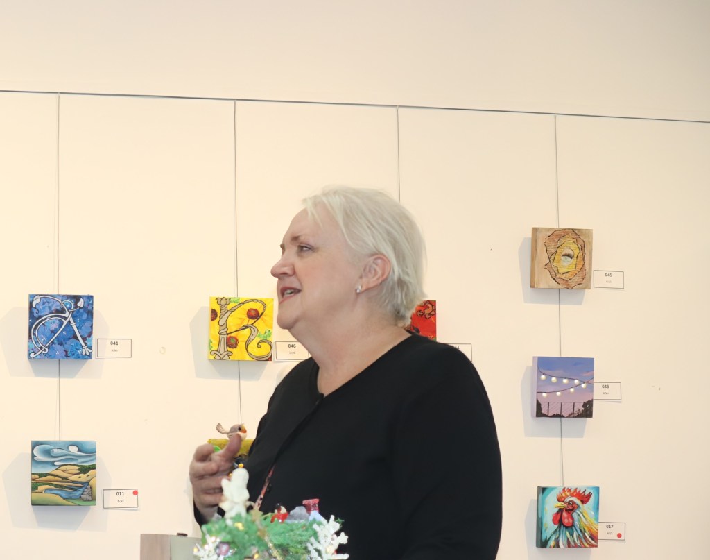 Cassandra Dolen, an established successful artist with published books was at the the artist reception for the October November showing of the “Who Done It” version of an anonymous artist competition and sale.