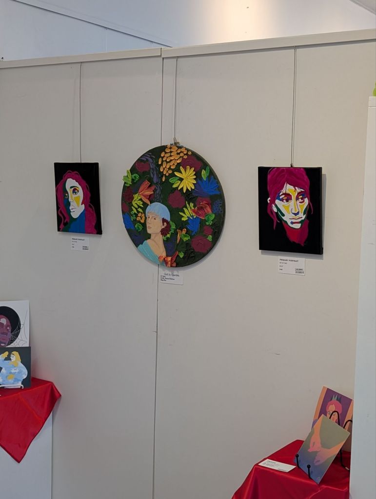 Two outstanding works noted are by Olivia Broman, Haunting late night lake, and Blue van on my mind. These works are very expresive with multiple faces in a range of torment to blank stare. The passion of life through risk and folly are are caught near baye.
