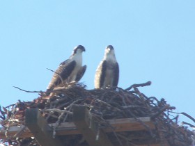The activity did not seem to put any stress on the birds who still continue their normal fishing and mating activity.( it will be interesting to watch when the line is energized although the birds will make nests on the top of regular power poles with seeming immunity to any kind of harm.) There are about a half dozen of the birds in area) ,only a single pair occupy the nest.