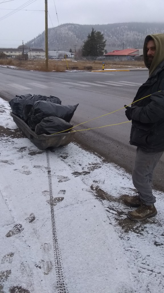 This fella had an unexpected day off a year ago or 2 years ago and he decided with the fresh snow that he could do something at the river, so he went down and he sledded what he found as far as recyclable stuff back into the economy.