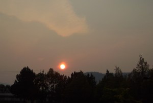 The sun west of Merritt, Red from smoke.. Photo KDG