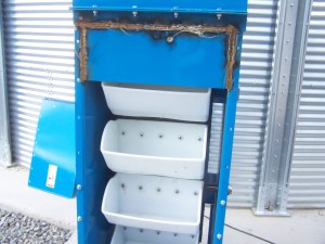 This is the bucket system feed that brings wood pellets up into a storage silo. Production of wood pellets here has not started as yet however the facility is progressing regularly and under good security on off hours.
