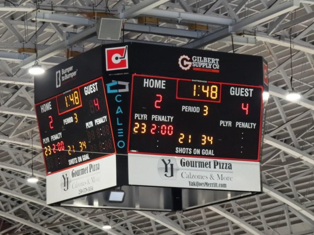 The Merritt team is on the road tonight in a tied lower score game 2-2 with 20 minutes of regular time left at the South Caribou Center in Hundred mile house.